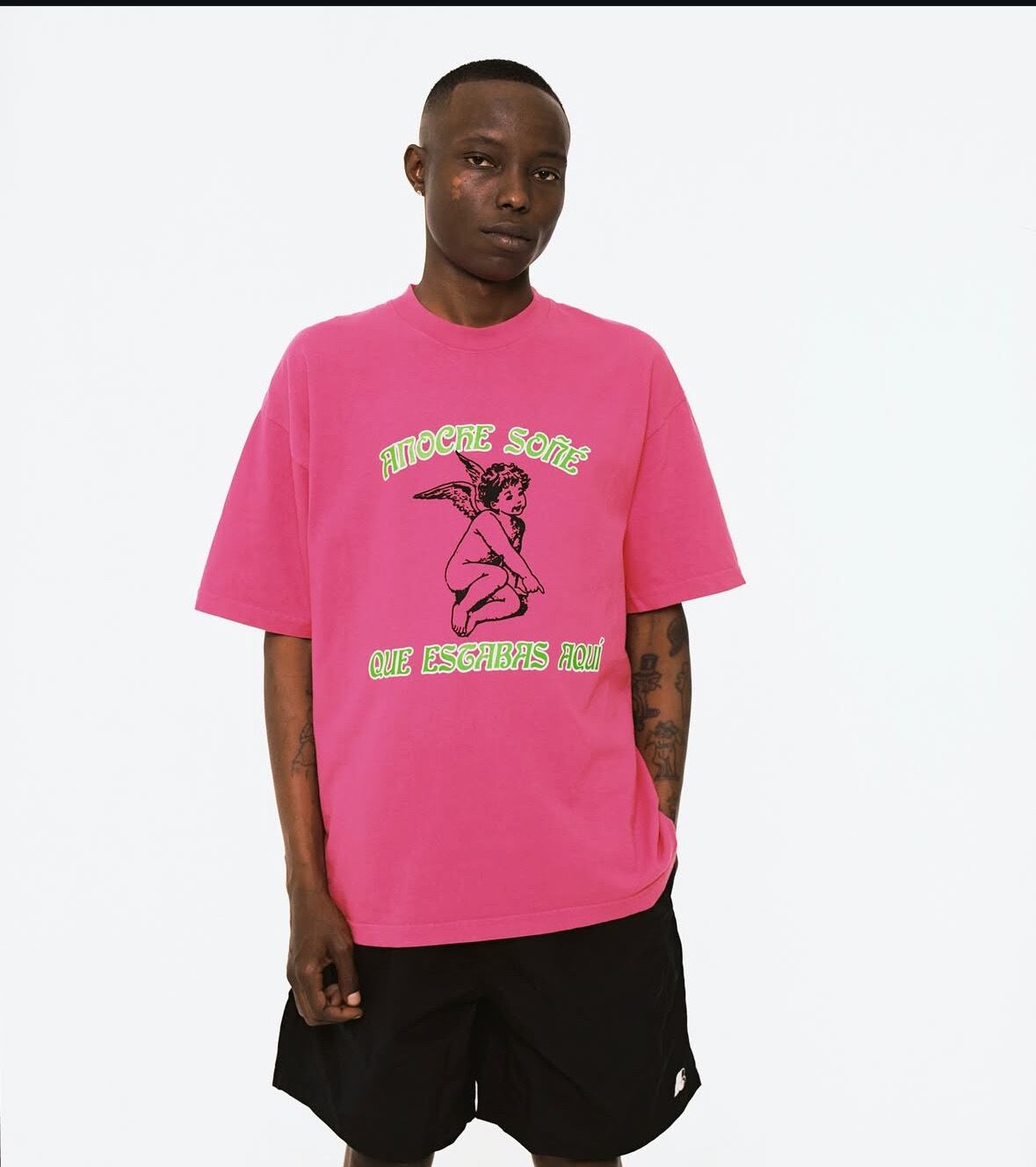 This graphic, featuring the text "Anoche Soñé Que Estabas Aquí" ("Last night I dreamed you were here") and a cherubic figure, marks the return of another Bueno classic. Rooted in themes of longing, love, and heartbreak, it captures the emotional essence of Latino passion—because we are lovers at heart!